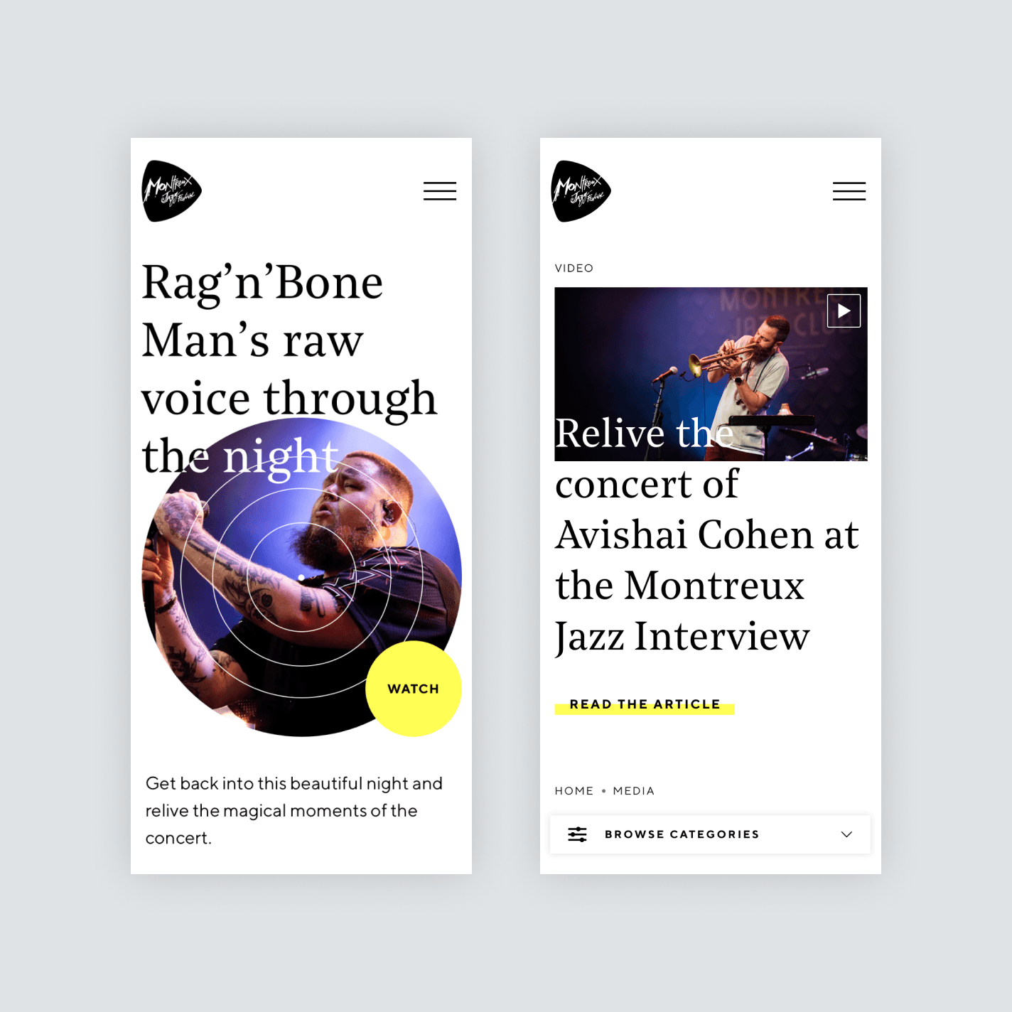 Nous avons repositionné la marque Montreux Jazz Festival et reconstruit son architecture. Tout ceci pour finalement aboutir à la production d’une solution Web sur mesure, offrant au festival la flexibilité et l'évolutivité nécessaire pour lui permettre de faire transiter progressivement leurs modèles d'affaires sur le digital, tout en s'assurant de retranscrire l'ADN de marque à travers l'expérience visuelle.